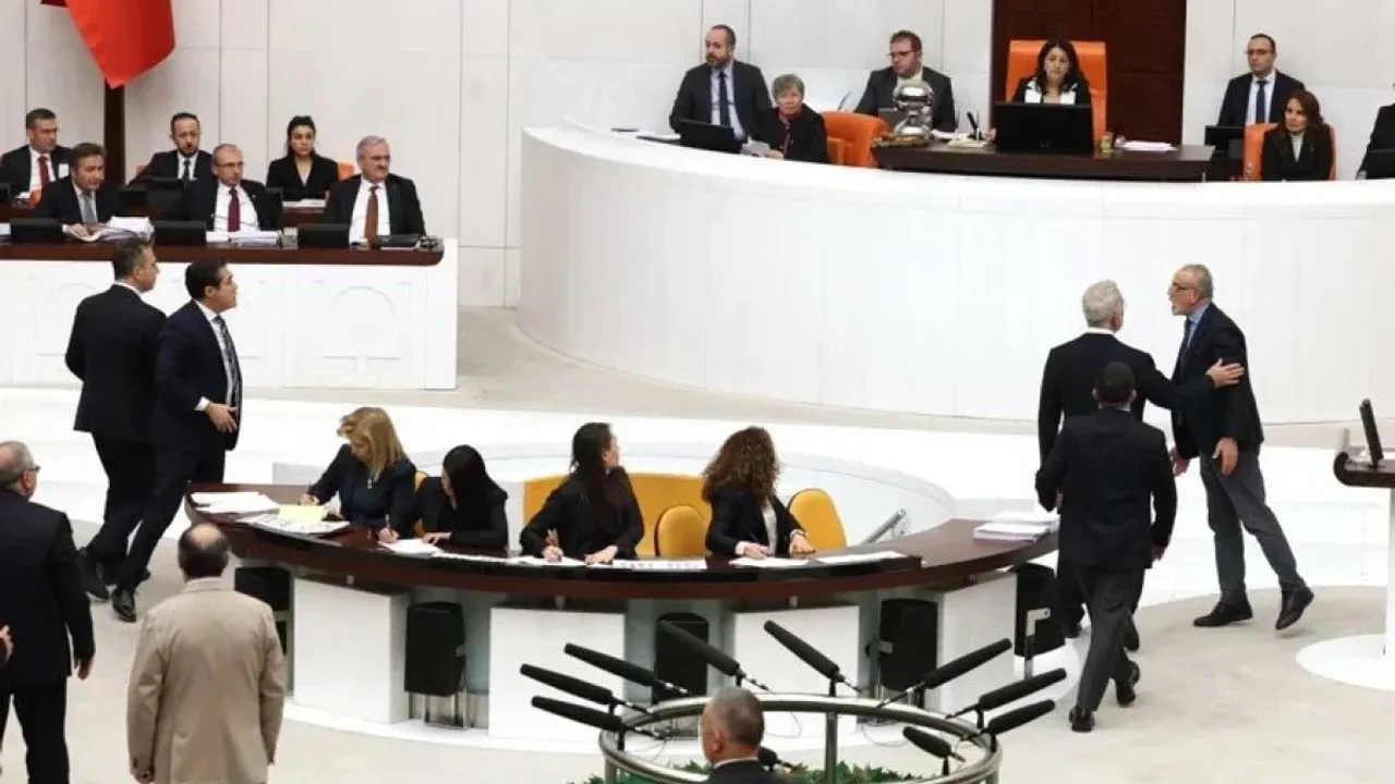 İyi Parti ve DEM Parti milletvekilleri sıralarından kalkarak birbirinin üzerine yürüdü.