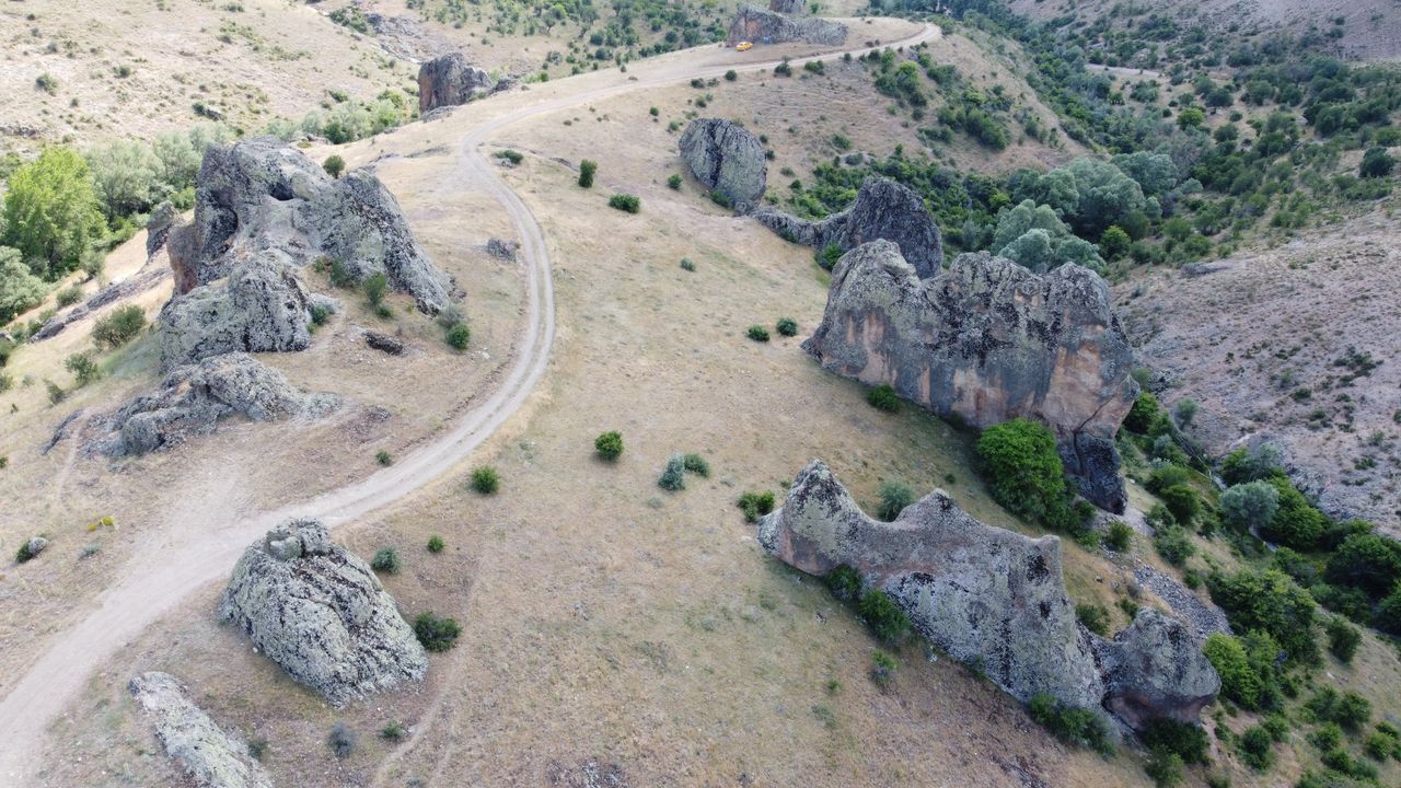 Dron görüntülerinde doğayla iç içe, büyüleyici bir manzaraya sahip olan bölgedeki oluşumlar deveye benzeyen şekilleri ve suları muhafaza eden oyuklarıyla hem tarih hem de doğa turizmi açısından önemli bir potansiyele sahip.