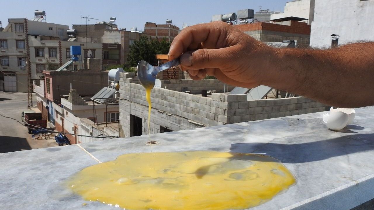 Aşırı sıcaklar en çok Güneydoğu'da hissediliyor. Hava sıcaklığının 42 derecenin üstüne çıktığı Kilis’te, bir vatandaş güneşin altında duran mermerin üzerine yumurta kırarak pişirdi. Aşırı sıcaklara dikkat çeken vatandaş, bir sonraki hedefinin ise mermerde et pişirmek olduğunu söyledi.
