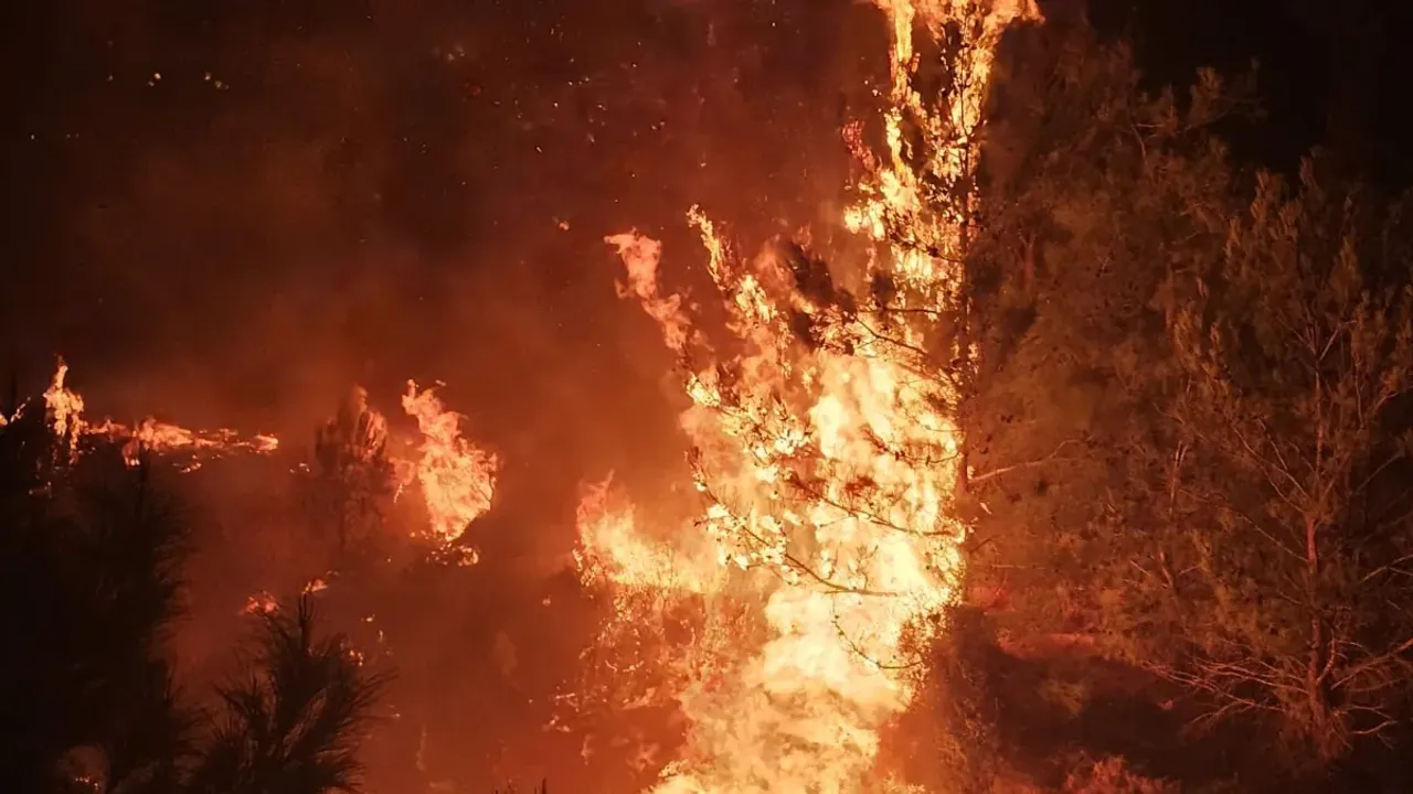 Bazı ağaçların zarar gördüğü bölgede soğutma çalışmasının sürdüğü bildirildi.