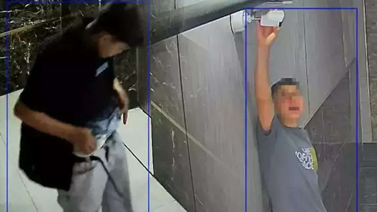 Olay, iş hanının güvenlik kamerasına yansıdı. Görüntülerde içeri giren iki kişiden biri asansörün köşesine tuvaletini yaparken, diğerinin ise kameranı açısını değiştirdiği yer alıyor.