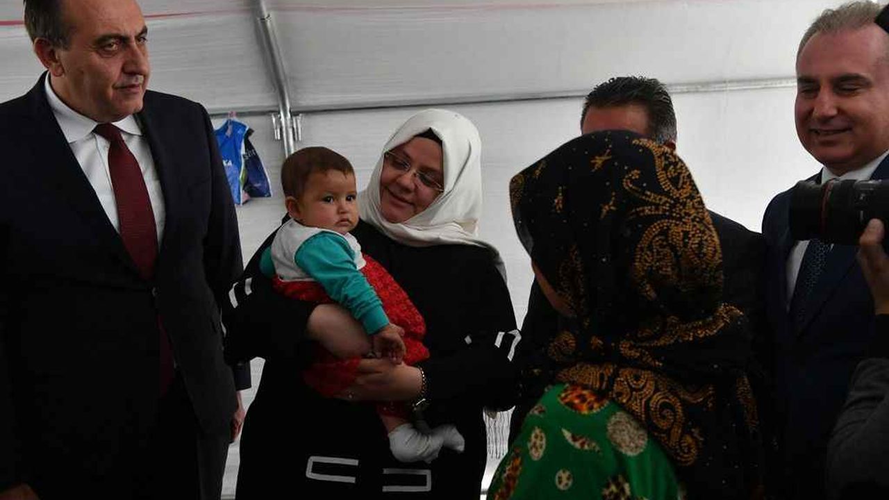 Yerleşkede yaşayan ve geçimini tarımla sağlayan Ali Karaca ve ailesine de ziyarette bulunan Selçuk, buradaki kreşi ve sağlık ocağını gezdi, çocuklarla ilgilenen Bakan Selçuk kırtasiye malzemesi ve çanta hediye etti.