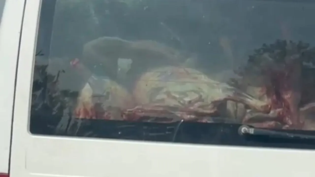 Seyhan ilçesine bağlı Reşabet Mahallesi Fuzuli Caddesi'nde çekilen görüntüde, etlerin aracın arkasında açık şekilde taşındığı görüldü.