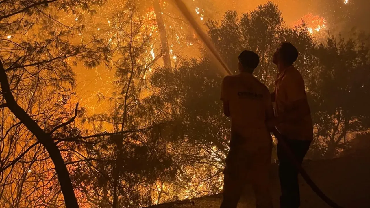 Ekipler, rüzgarın etkisiyle yayılan yangını kontrol altına almak için gece boyu çalışma yürüttü.
