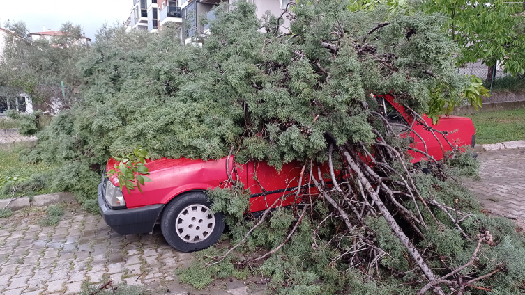 Menteşe ilçesi Muslihittin Mahallesi Menekşe Sokak'ta, sabaha karşı şiddetini artıran rüzgar nedeniyle park halindeki bir otomobilin üzerine ağaç devrildi. Araçta hasar meydana geldi. Ağaç, belediye ekiplerince kesilerek kaldırıldı.