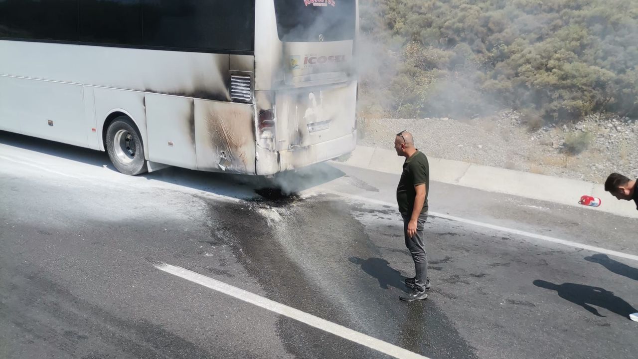 Yangın sırasında otobüs içerisinde bulunan yolcular tahliye edilerek güvenli bölgeye alındı.