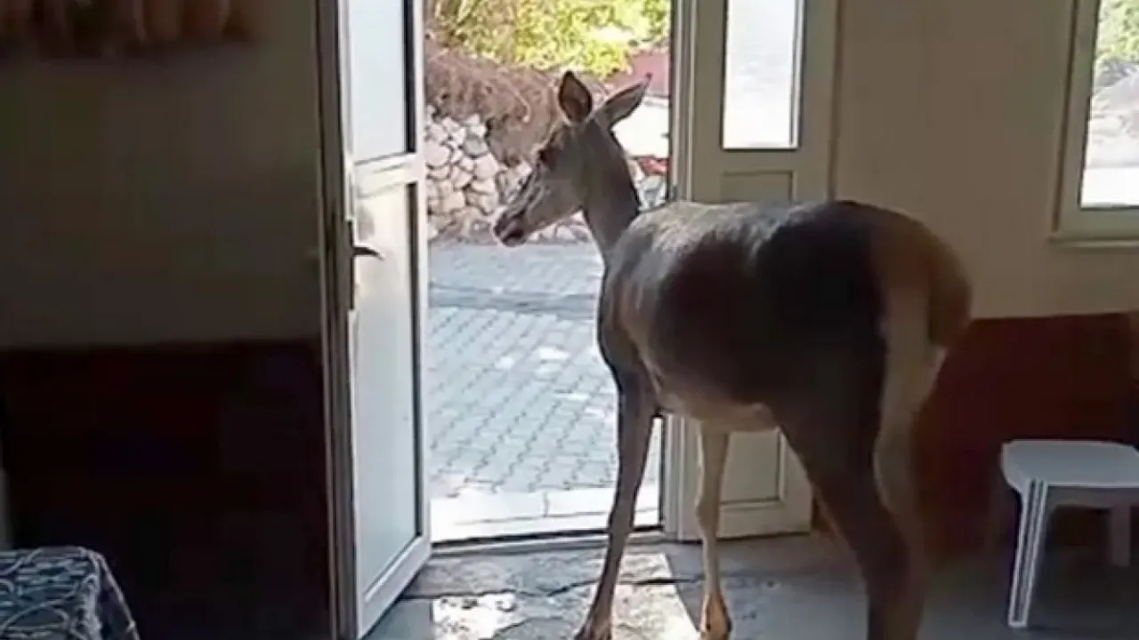Mahallede dolaşan geyik, Tuncer Söker’e ait köy kahvehanesine girdi. O sırada içeride müşteri bulunmazken, kısa süre kalan hayvan daha sonra dışarı çıktı.