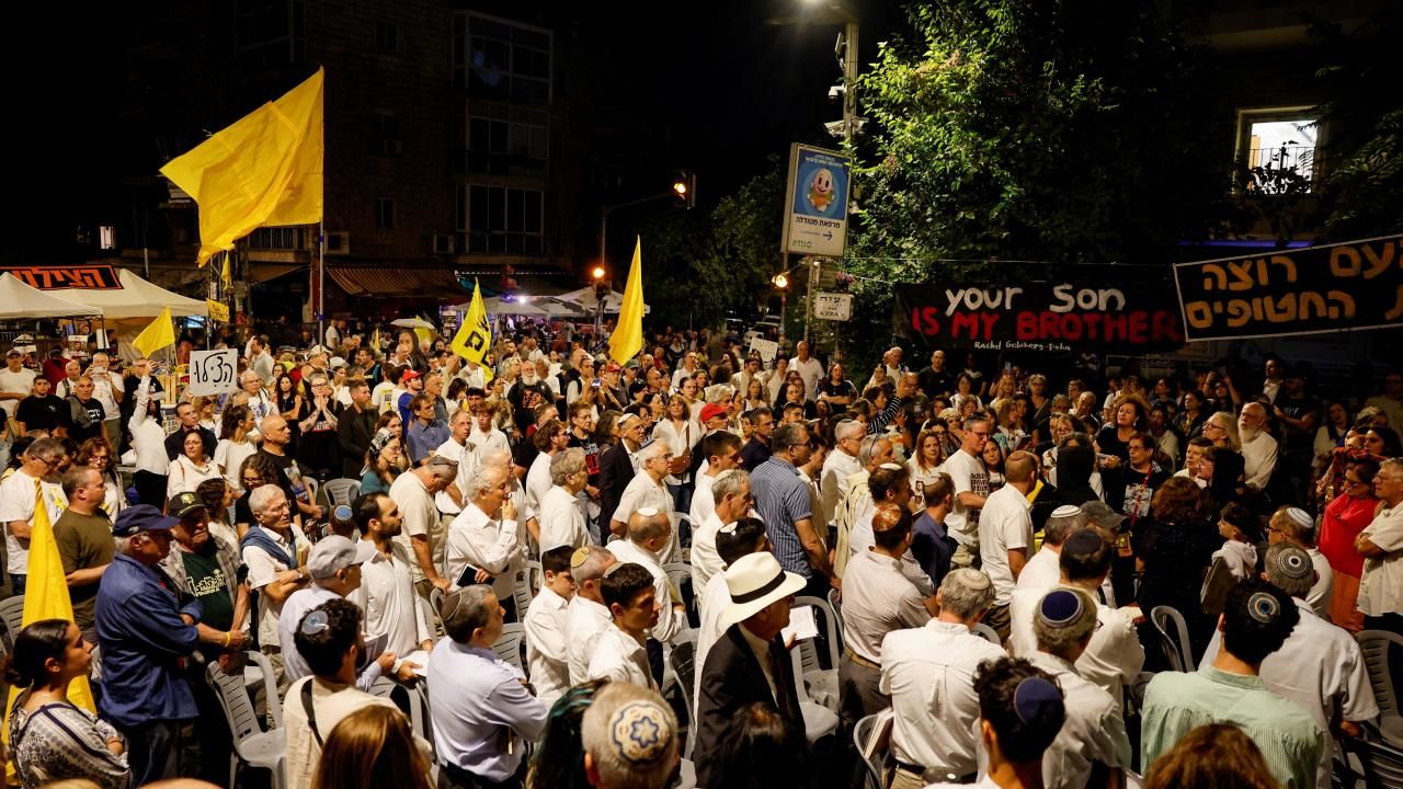 Gazze'deki esirler evine dönen kadar "bayram yapmayacaklarını" vurgulayan yüzlerce İsrailli protestocu, Netanyahu'dan Gazze'de ateşkes ve esir takası anlaşmasına varmasını istedi.