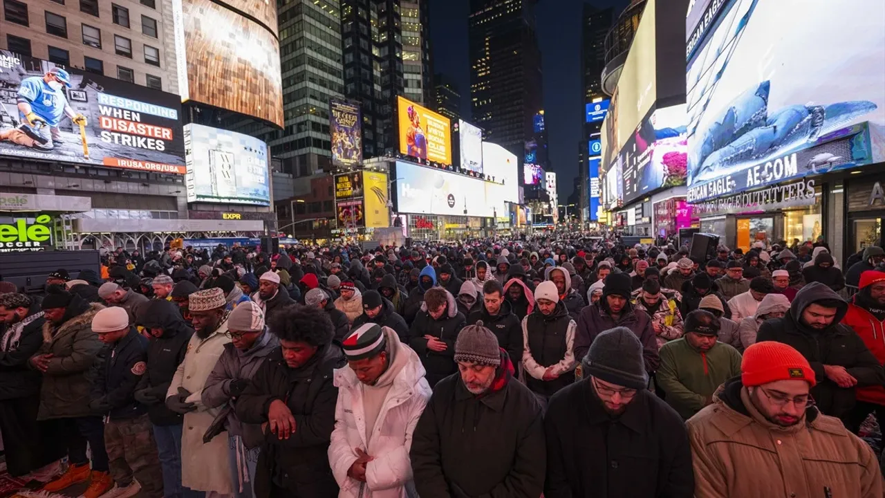 ABD'nin New York eyaletindeki ünlü Times Meydanı'nda, Ramazan ayının başlamasıyla birlikte yüzlerce Müslüman bir araya gelerek iftar ve teravih namazında buluştu.