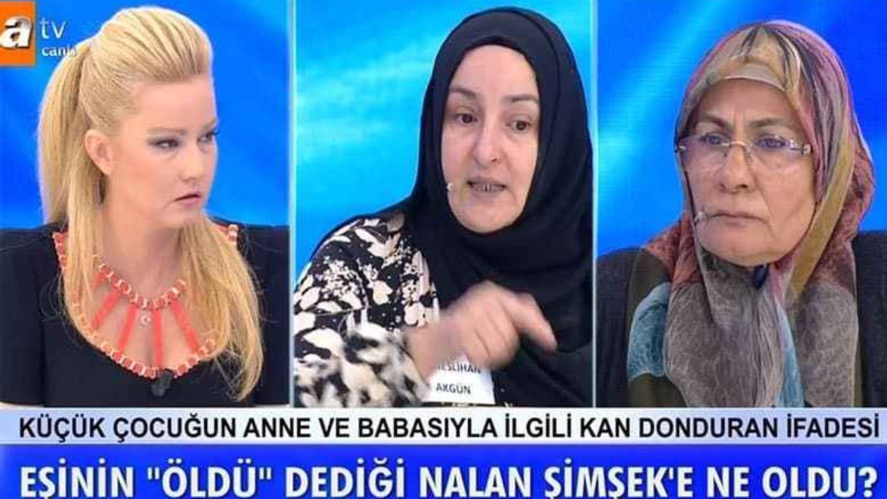 Nilgün (Nalan) Şimşek’in ablası Neslihan Akgün ve Mustafa Şimşek hakkında şoke eden bir detay ortaya çıktı. İddiaya göre Müge Anlı ile Tatlı Sert canlı yayınından sonra Mustafa Şimşek, Neslihan Hanım’ı arayarak tehdit etti. Müge Anlı programda Neslihan Akgün’e, “Elinde bir görüntün mü var? Ses kaydın mı var? Ondan mı korkuyorsun” sorularını yöneltti. Neslihan Akgün ise başı açık görüntüleri olabileceğini çünkü evde kaldığını belirtti. Bu bilgiler üzerine Müge Anlı ekibine konuşan komşu Öznur Hanım, Neslihan Akgün ile Mustafa Şimşek’in eski eşi Gülay Hanım’ın, Nilgün Şimşek ortadan kaybolduktan sonra Mustafa Bey ile evlenmek için yarışa girdiklerini iddia etti.