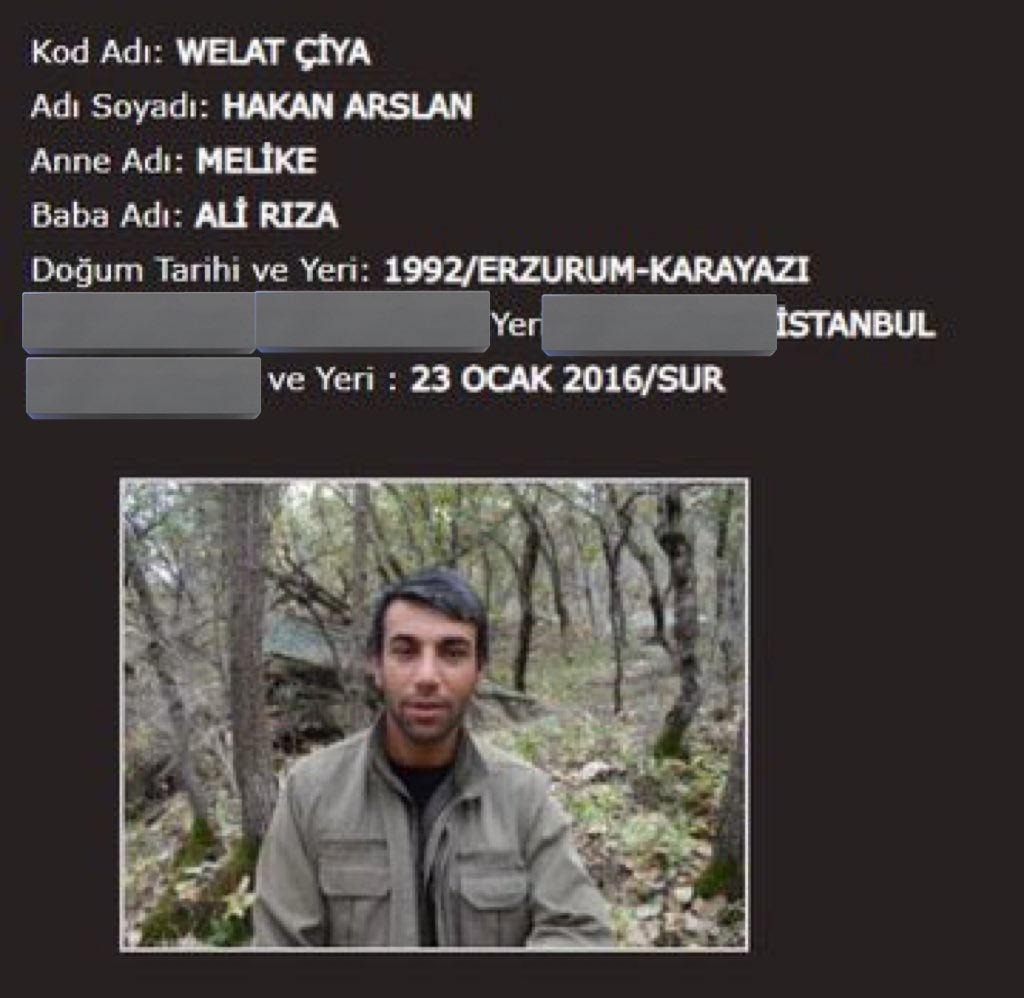 Welat Çiya kod adlı terörist Hakan Arslan 2016 yılındaki hendek operasyonları sırasında etkisiz hale getirildi. Cesedi ise PKK terör örgütü mensupları tarafından toprağa gömüldü. 2021 yılında ise terörist Hakan Arslan'ın cesedine ait kemiklerin Sur İlçesi'nde yapılan bir kazı çalışmasında bulunduğu, ardından da babasına teslim edildiği öğrenildi.