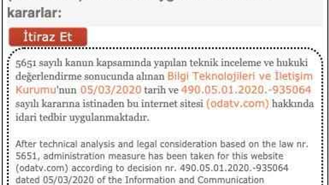 Bilgi Teknolojileri ve İletişim Kurumu, Odatv’ye erişim engeli getirildiğini açıkladı.