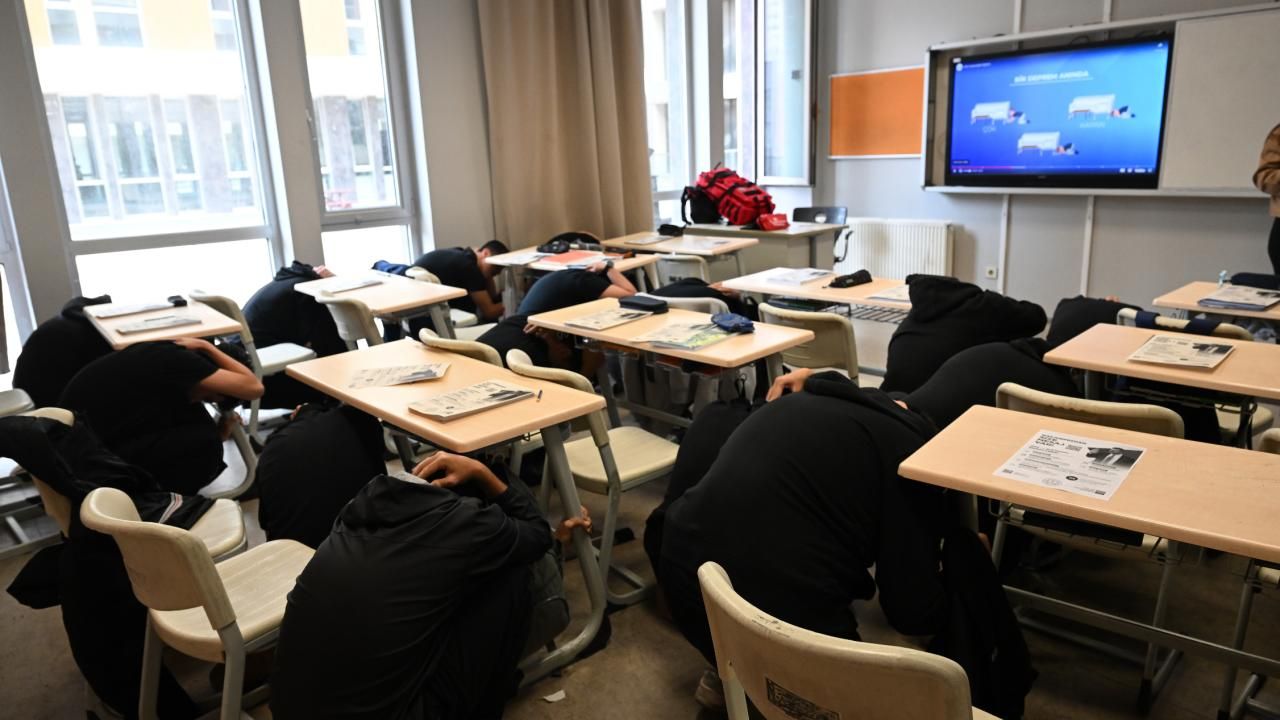 MEB AKUB üyeleri, öğrencilere deprem öncesinde ve esnasında yapılması gerekenlere ilişkin bilgilendirmede bulundu, ardından gerçekleştirilen tatbikatta, öğrenciler siren uyarısıyla çök-kapan-tutun tekniğini uyguladı.