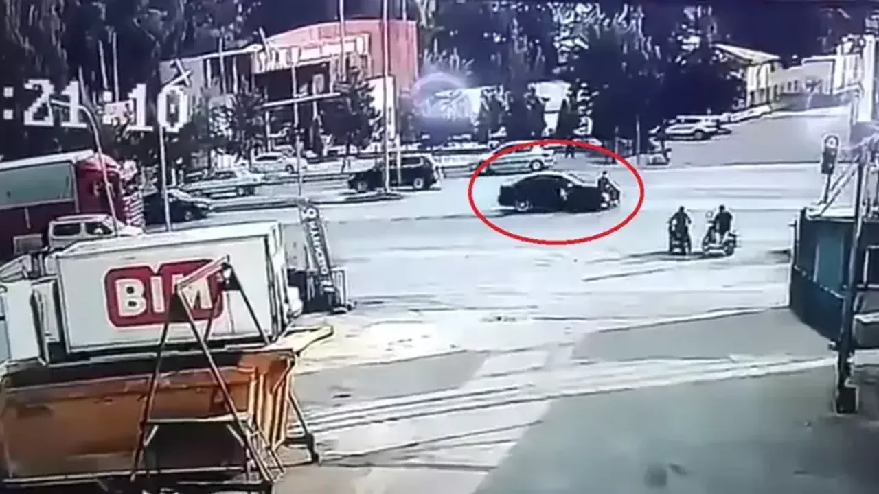 Kaza anı bir iş yerinin güvenlik kamerasınca görüntülendi.