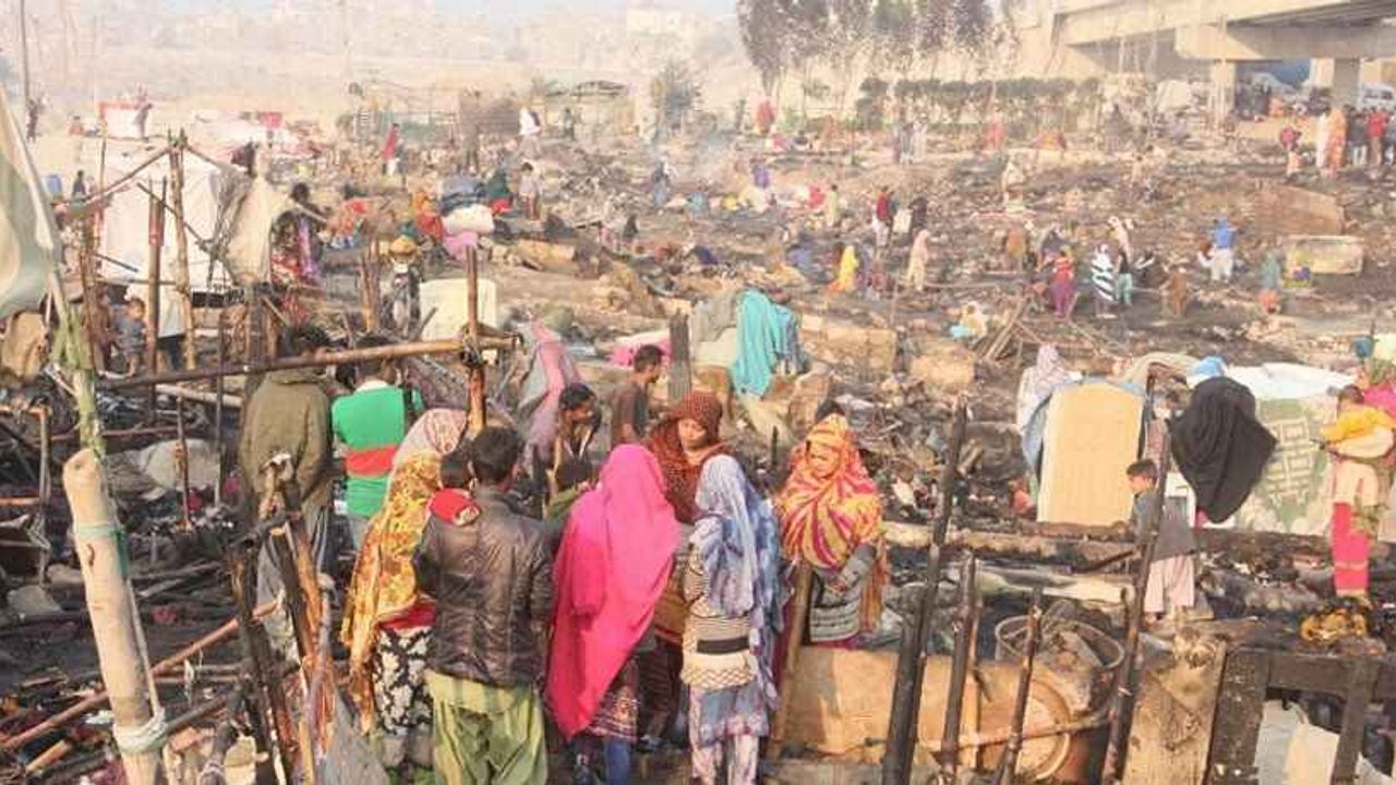 Pakistan’ın Karaçi şehrinin Tean Hatti bölgesinde bulunan bir gecekondu mahallesinde henüz bilinmeyen bir nedenle yangın çıktı.