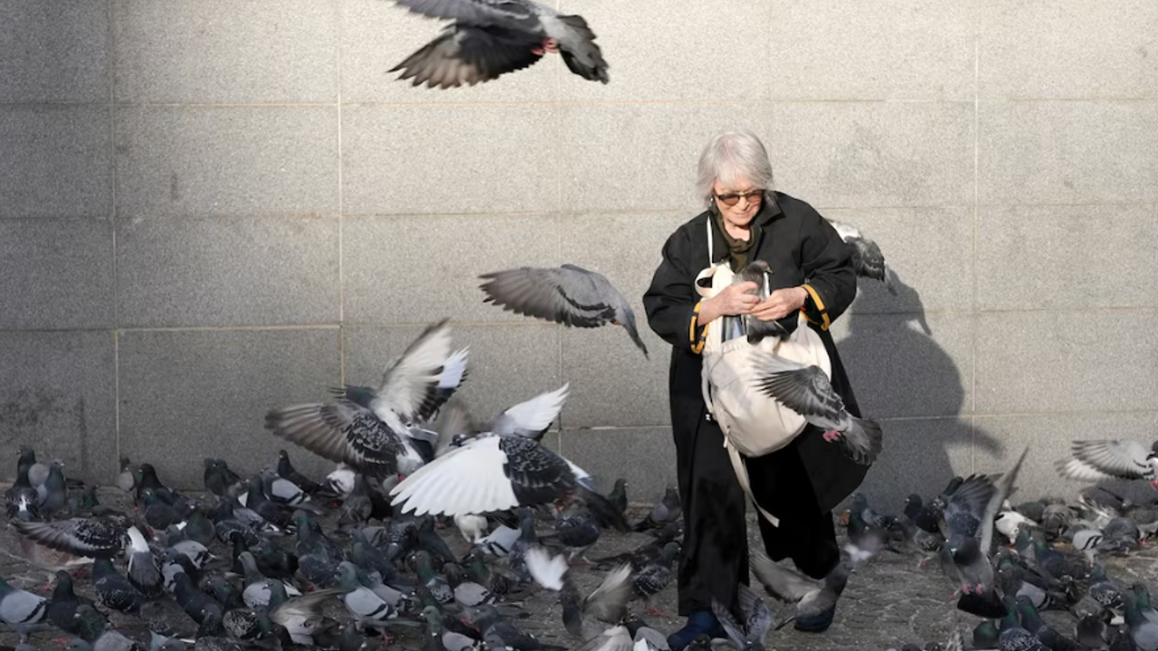 Catherine Hervais her gün şehir merkezindeki meydanda yaralı güvercinleri yem yardımıyla yakalıyor, ardından makas ve cımbızla ayaklarının etrafındaki zararlı kalıntıları dikkatlice temizliyor.