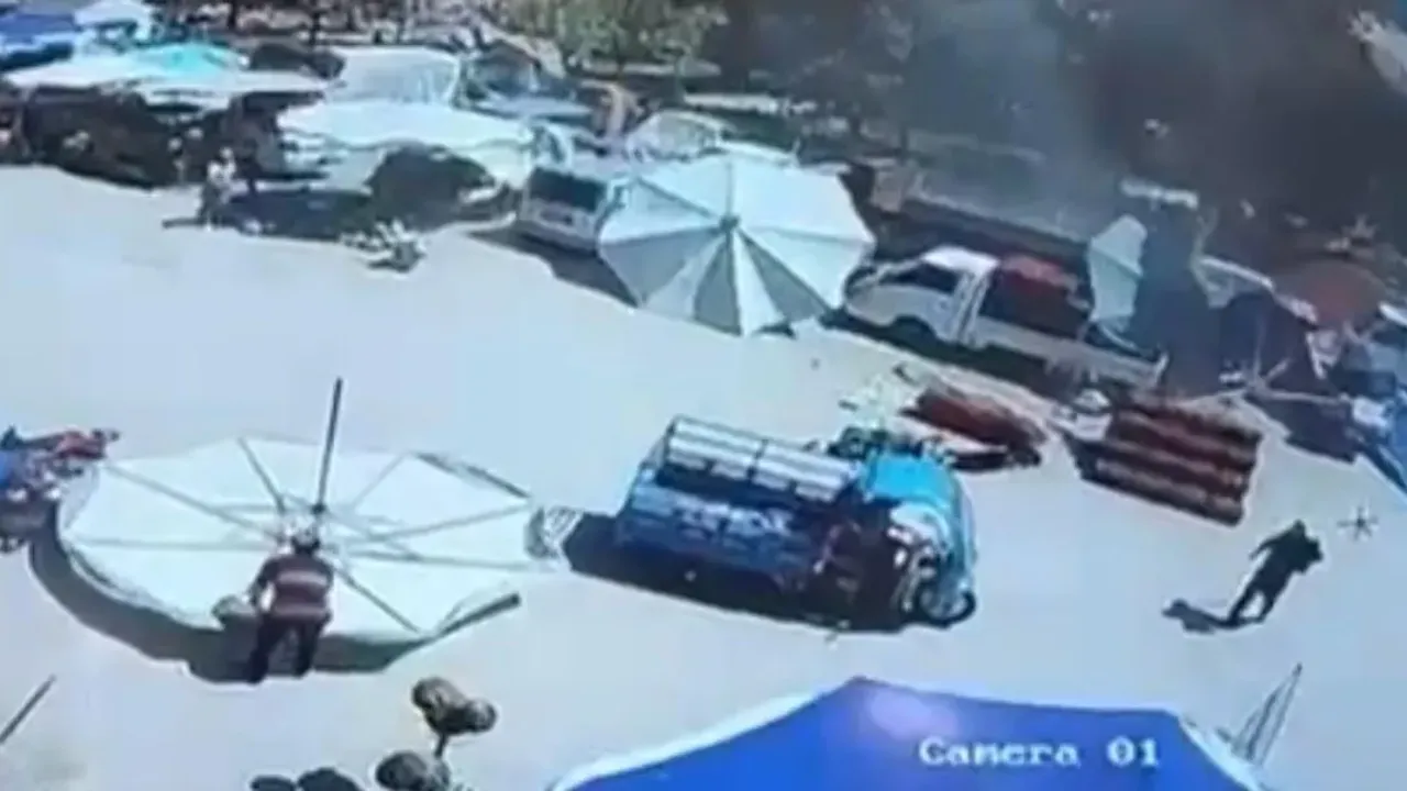 İzmir'in Kiraz ilçesinde, alışveriş yapan hamile D.O. ile bebek arabasındaki çocuğu, kuvvetli rüzgar nedeniyle yerinden koparak savrulan şemsiyenin altında kaldı.