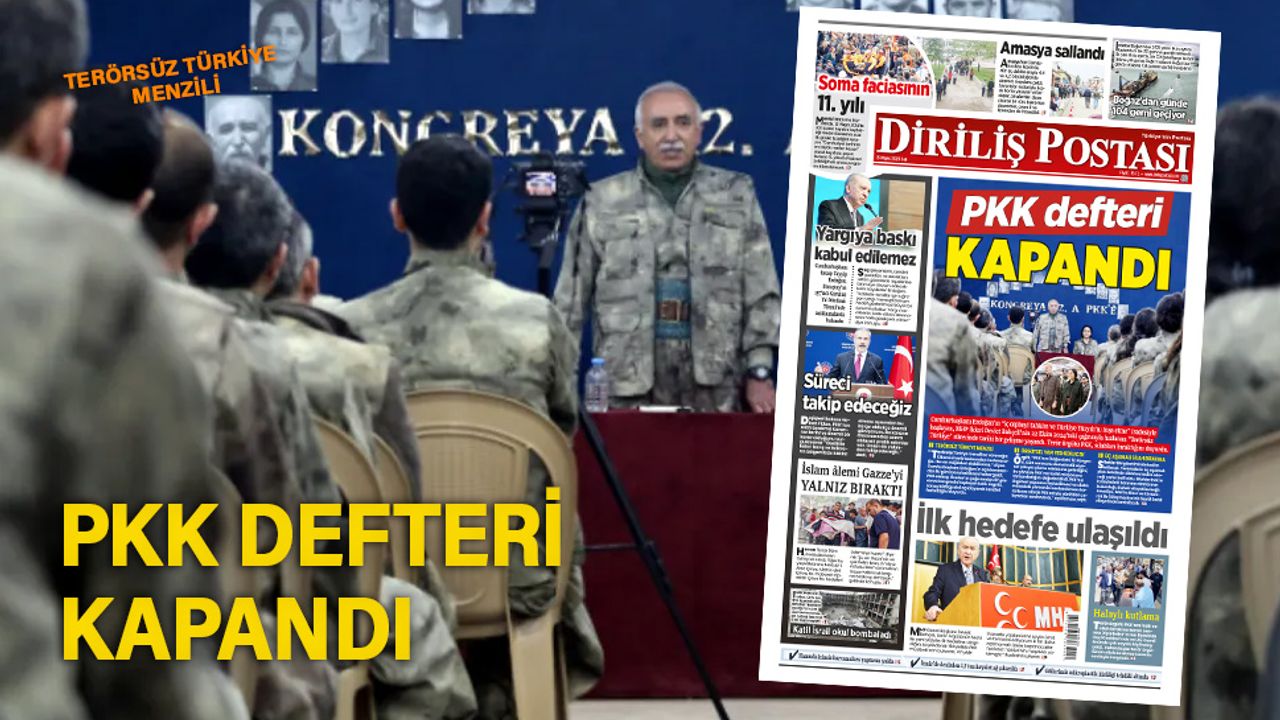 “Terörsüz Türkiye menziline varacağız. Ülkemizi terör belasından kurtaracağız. Her an müjdeleri alabilirsiniz.” diyen Cumhurbaşkanı Erdoğan'ın açıklamasından iki gün sonra beklenen haber geldi. PKK elebaşı Öcalan’ın çağrısından 67 gün sonra kongresini toplayan terör örgütü, sonuç bildirgesini açıklayarak kendini feshettiğini duyurdu.