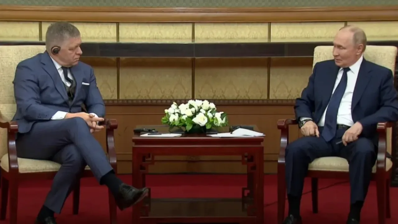 Çin'deki diplomatik temaslarını sürdüren Vladimir Putin, başkent Pekin'de Slovakya Başbakanı Robert Fico ile bir araya geldi.