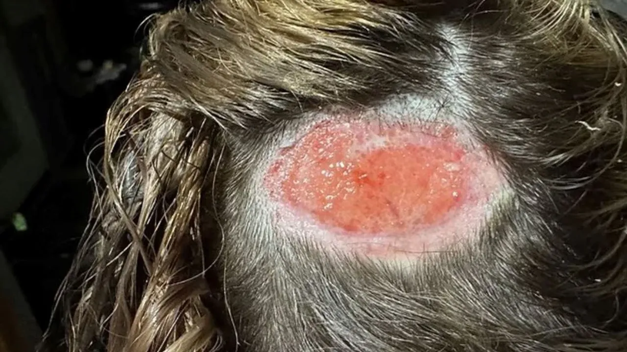 Evine döndüğünde ise başında uzun, kırmızı bir çizgi belirdi ve kısa süre sonra kafa derisinden deri ve saç parçaları döküldü. Hastaneye kaldırılan genç, doktorlar tarafından epidermis adı verilen cildin en dış tabakasında birinci derece kimyasal yanık geçirdiği bildirildi.