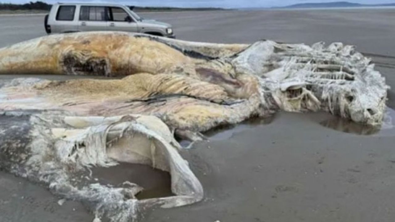 Galler'deki Cefn Sidan Plajı'nda sabah saatlerinde ortaya çıkan dev kalıntının, büyük bir deniz canlısına ait olduğu izlenimi ağır bastı. yarı çürümüş haldeki iskelette kaburgalara benzer kemikler ve et parçaları görüldü ki bu da balina olabileceği yönünde düşünceleri güçlü kıldı.