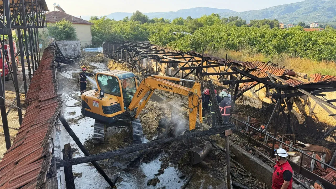 Yangın kontrol altına alındı ancak geriye yalnızca küle dönmüş bir ahır ve telef olmuş hayvanlar kaldı.