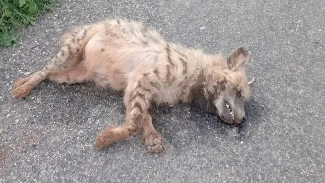 Şanlıurfa'nın Birecik ilçesinin Karşıyaka Mahallesi yakınlarında vatandaşlar, yolda hareketsiz halde bir vahşi hayvan olduğunu fark etti.