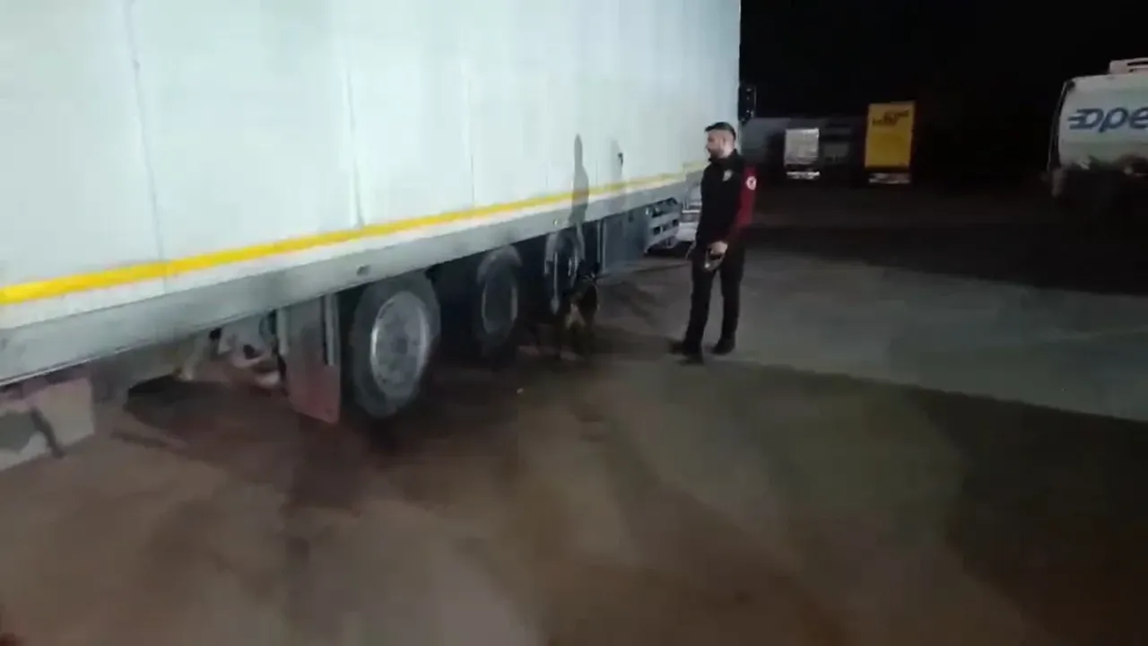 Uygulamada durdurulan tırda narkotik köpeği 'Bozo' ile yapılan aramada; kıyafet kutularında 68,5 kilogram eroin, 23,5 kilogram skunk ve 9 kilogram esrar ele geçirildi.