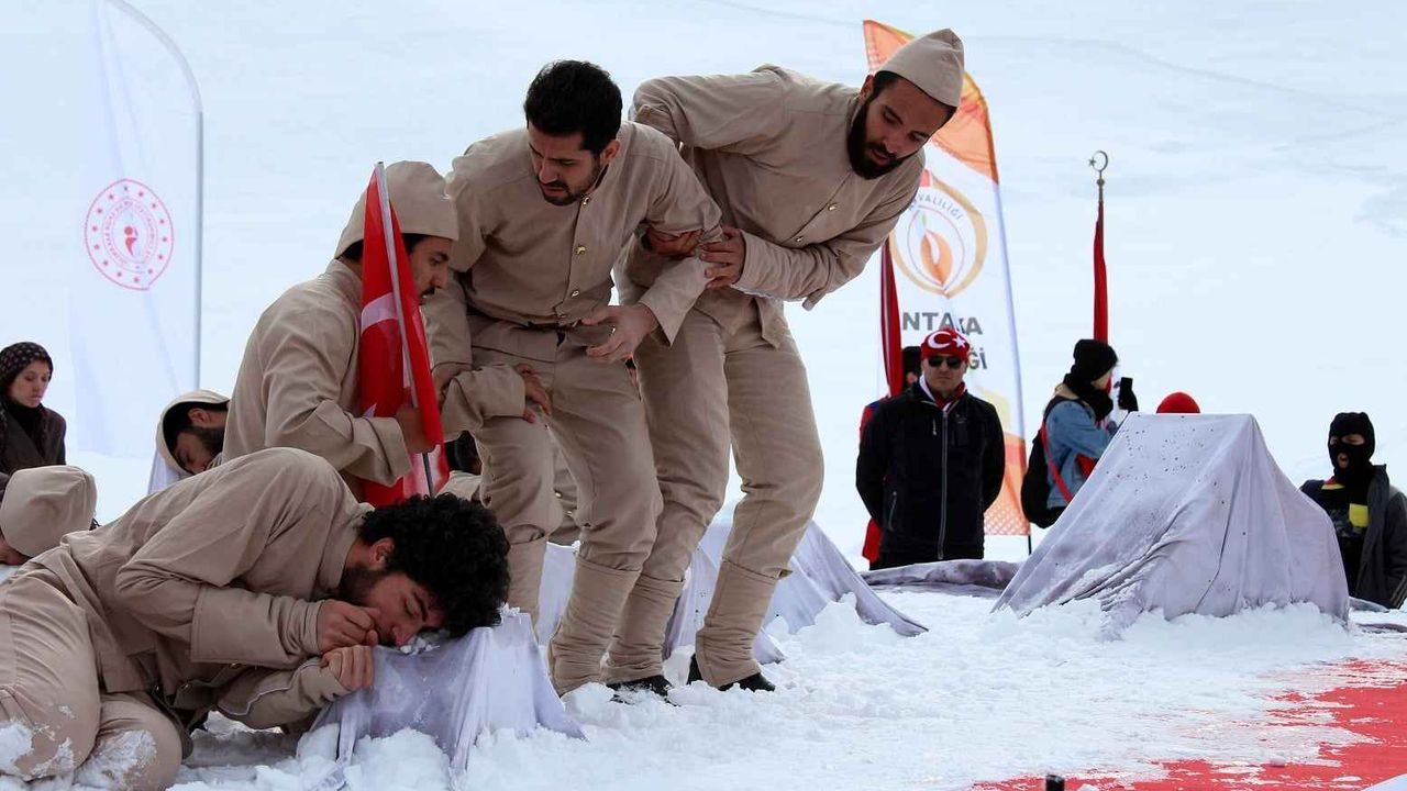 Etkinliğe kızlarıyla katılan Karaloğlu, bembeyaz karlar üzerinde Sarıkamış kahramanlarını anmak için bir araya geldiklerini söyledi.