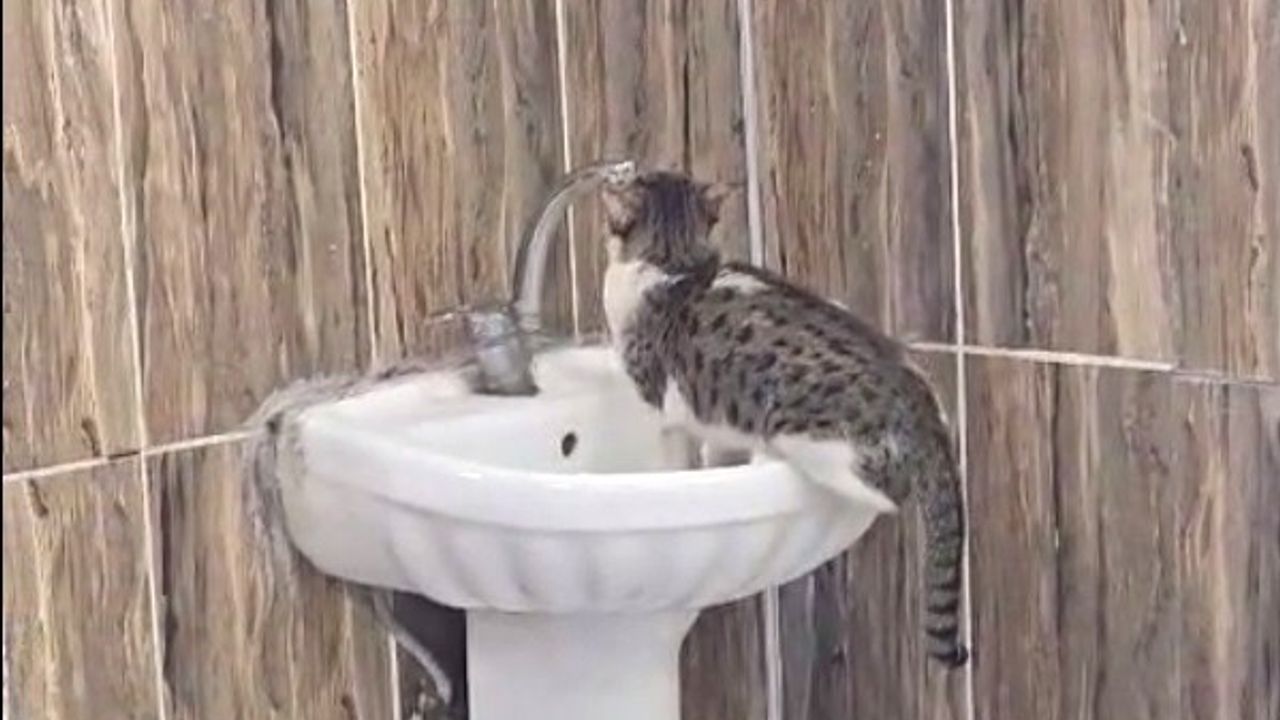Olay, acil serviste yatan bir hastanın refakatçisi tarafından fark edildi. Hasta yakını, kedinin önce musluğu ustalıkla açıp damlamasını sağladıktan sonra su içtiği anları cep telefonu kamerasıyla kaydetti.