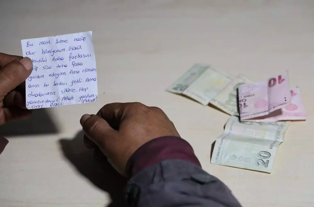 Bu sırada Özkan, montun cebinde 50 TL para ve ‘Bu mont kime nasip olur bilmiyorum. Gönül isterdi ki size daha fazlasını verip yardım edeyim ama elimden ancak bu kadar geldi. Dualarımız sizinle Allah yardımcınız olsun’ yazılı not buldu. Not ve para karşısında duygulanan adam, parayı ihtiyaç sahibi bir aileye ulaştırmak üzere mahalle muhtarlığına teslim etti, notu ise sakladı.