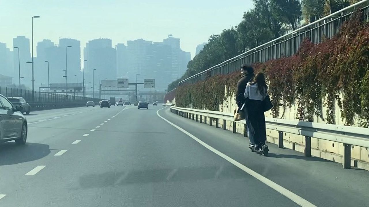 İstanbul'da elektrikli scooter ile D-100 Karayolu'na çıkan iki kişi, trafiği ve kendilerini tehlikeye attı. Olay, D-100 Karayolu'nun Kadıköy yönünde meydana geldi.