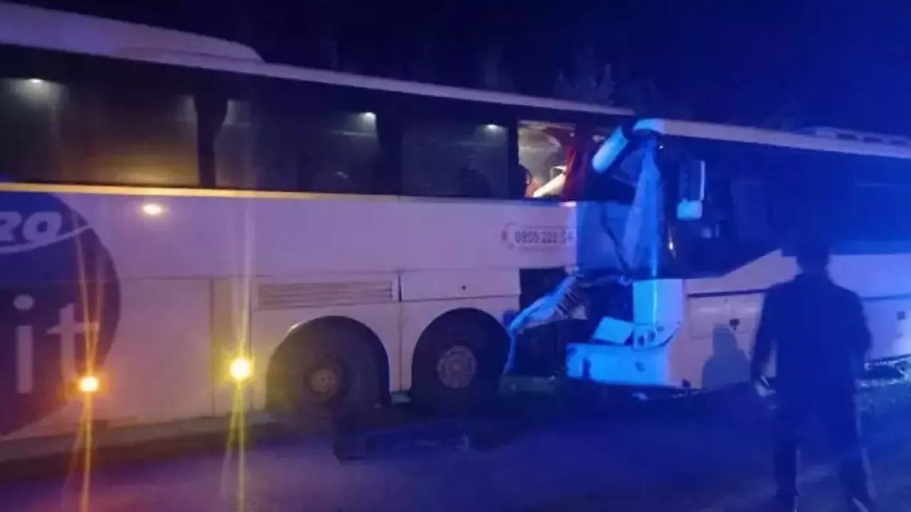 Çarpmanın etkisiyle otobüslerde bulunan 13 yolcu yaralandı.