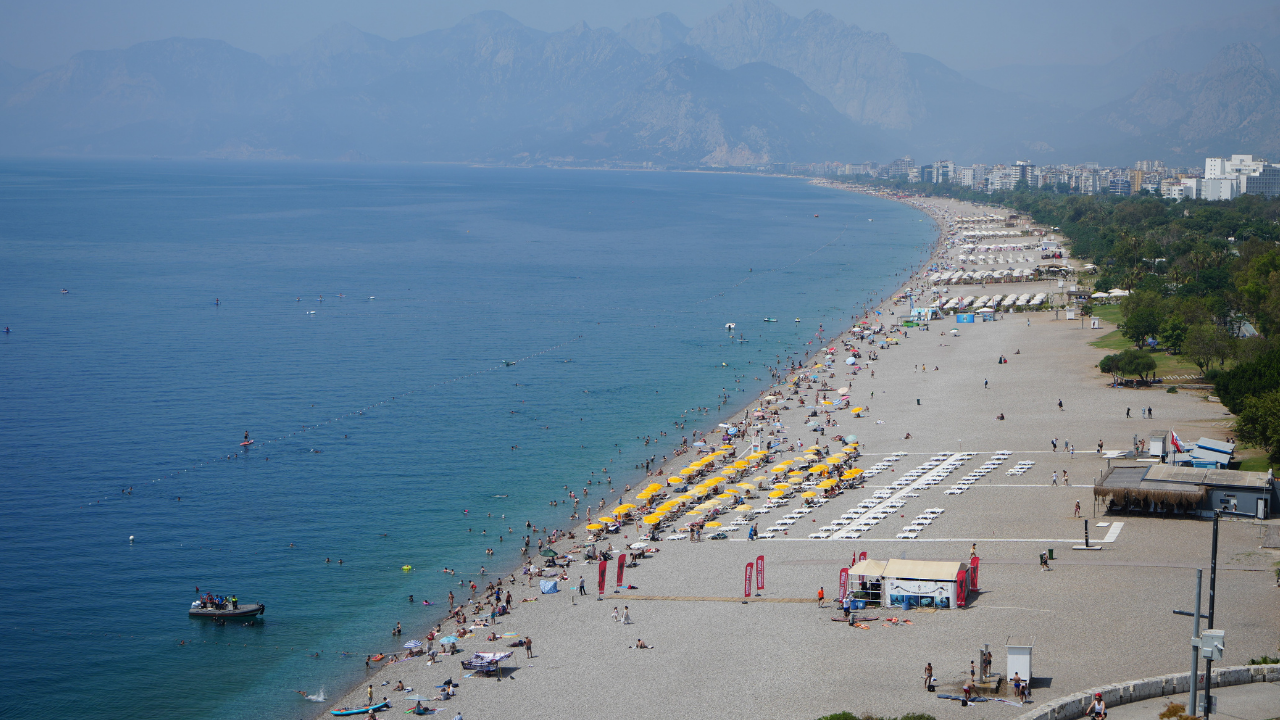 Dünyaca ünlü Konyaaltı Sahili'nde plaj boyunca şezlong ve şemsiye alanlarında yer bulmak zorlaşırken, tatilciler serin sulara girerek bayramın tadını çıkardı. Denizde Stand Up Paddle (SUP) yapanların da sayıca fazla olması dikkat çekti.