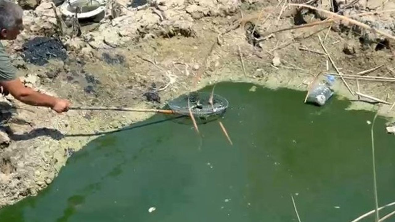 İçerisinde yaşayan balıkların bir kısmı telef olurken kalan balıkları kurtarması için mahalle halkı durumu muhtara haber verdi.