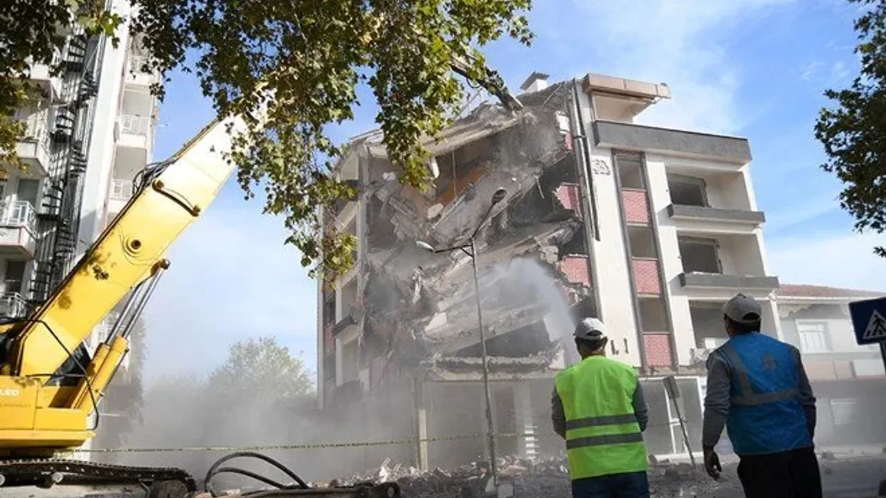 Sındırgı'da 6.1'lik depremde hasar gören binaların yıkımı sürüyor.