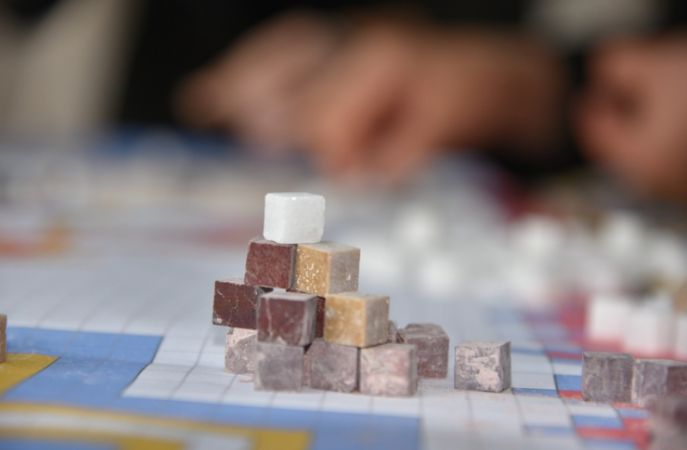 Kültür Yolu Projesi kapsamında bölgede bulunan doğal taşlardan halı desenlerine uygun renkler seçilerek özel işlemle hazırlandı.