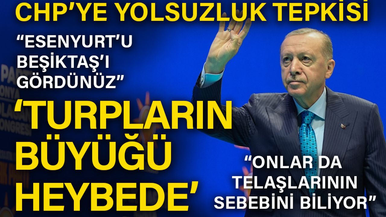 Konuşmasında Beşiktaş Belediyesi hakkındaki soruşturmaya değinen ve CHP'yi eleştiren Cumhurbaşkanı Erdoğan, "Onlar da çok iyi biliyorlar ki daha turpların büyükleri heybede. Telaşlarının sebebi bu" ifadelerini kullandı.