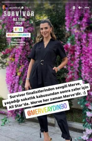 Yayınladığı her dönemde adından söz ettiren Survivor yarışması, 2024'te All Star bölümüyle ekrana gelecek. Survivor All Star'ın Nihat Altınkaya, Nagihan Karadere, Ogeday Girişken, Aleyna Kalaycıoğlu, Sercan Yıldırım, Damla Can Turabi Çamkıran ve Poyraz Yiğit'in ardından yeni yarışmacısı Merve Aydın oldu.