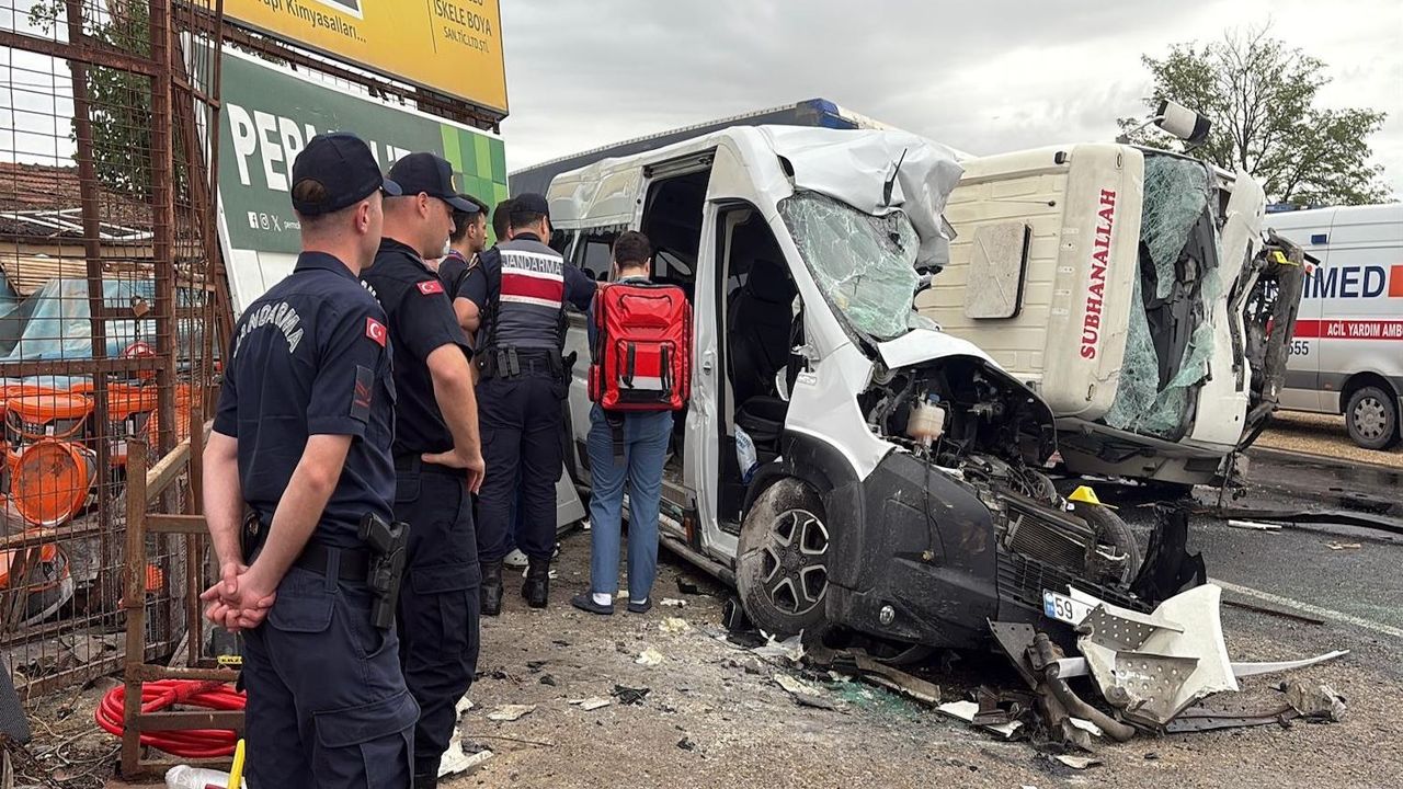 Velimeşe Mahallesi'nde servis minibüsü ile kamyon çarpıştı.
