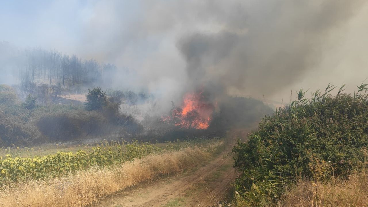 Yangın dolayısıyla bazı çiftçilere ait üzüm bağları, ayçiçeği tarlaları ve zeytinliklerin zarar gördüğü belirtildi.