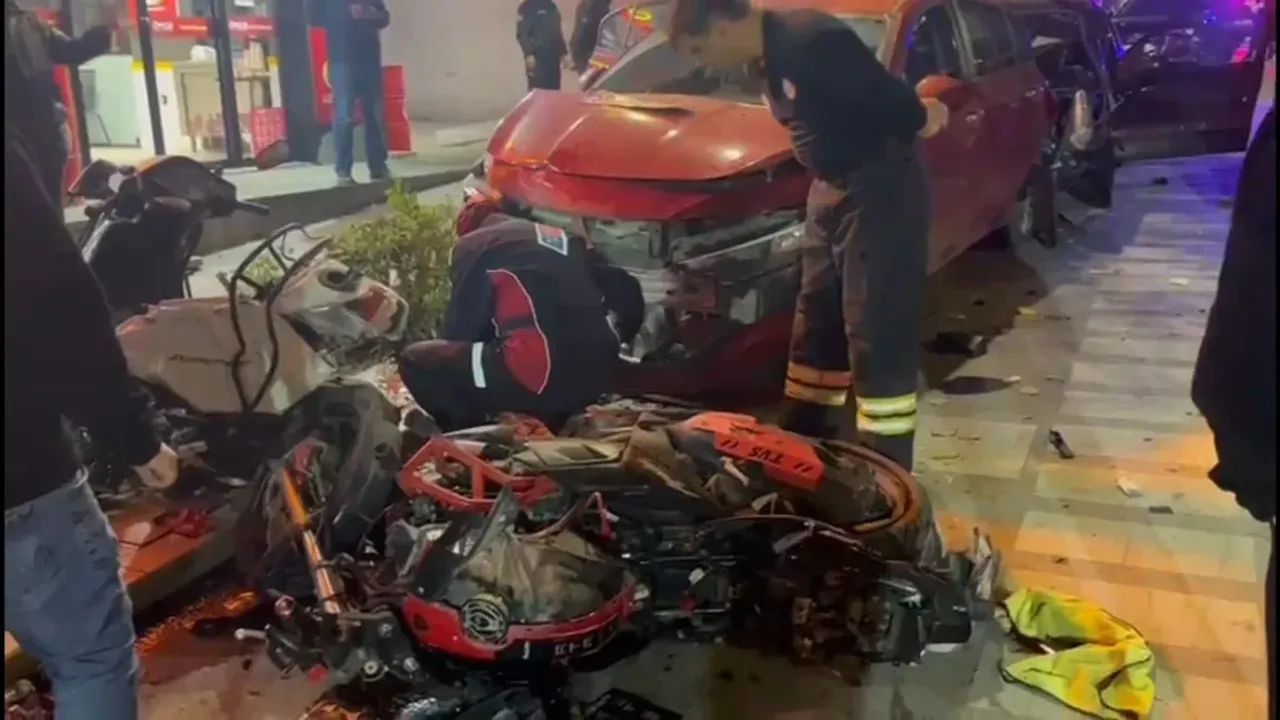 Çarpmanın etkisiyle savrulan araçlar, yol kenarında park halinde bulunan 2 otomobil ve 3 motosiklete çarptı. Toplam 7 aracın karıştığı kazada çevrede kısa süreli panik yaşandı.