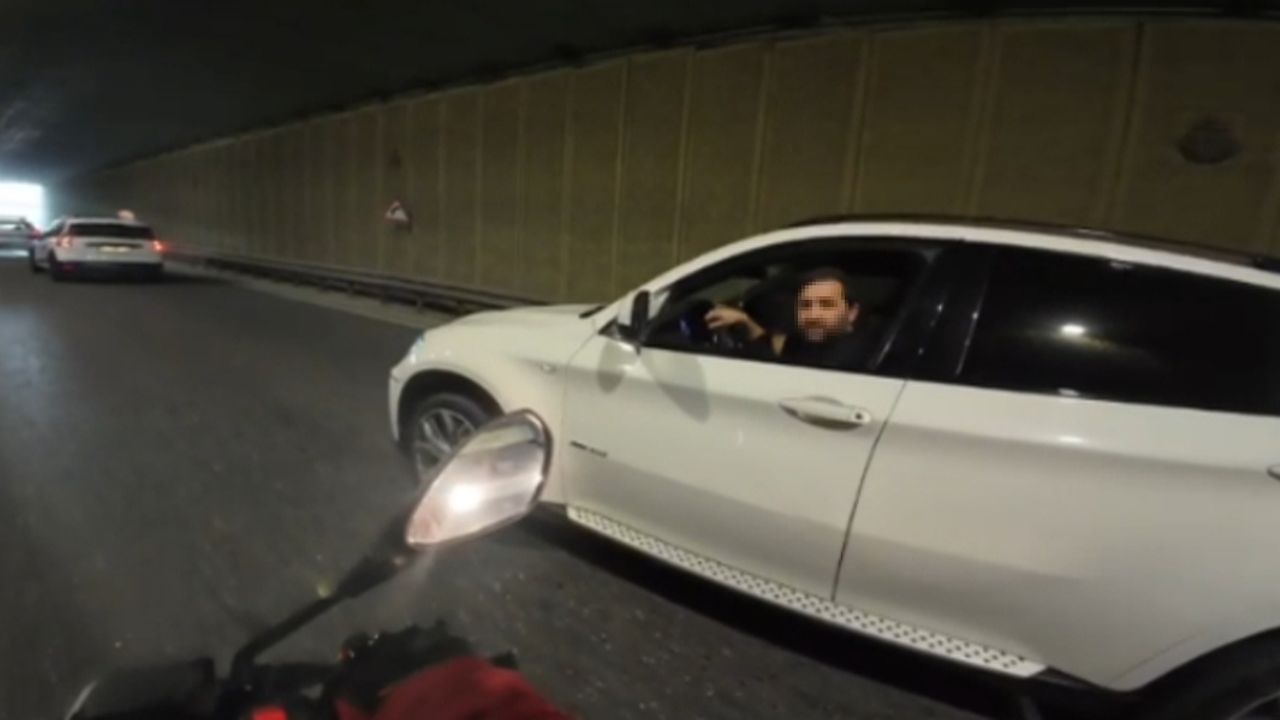 Motosikletli, Cumhuriyet Mahallesi tünel girişinde korna çalarak otomobili durdurdu.