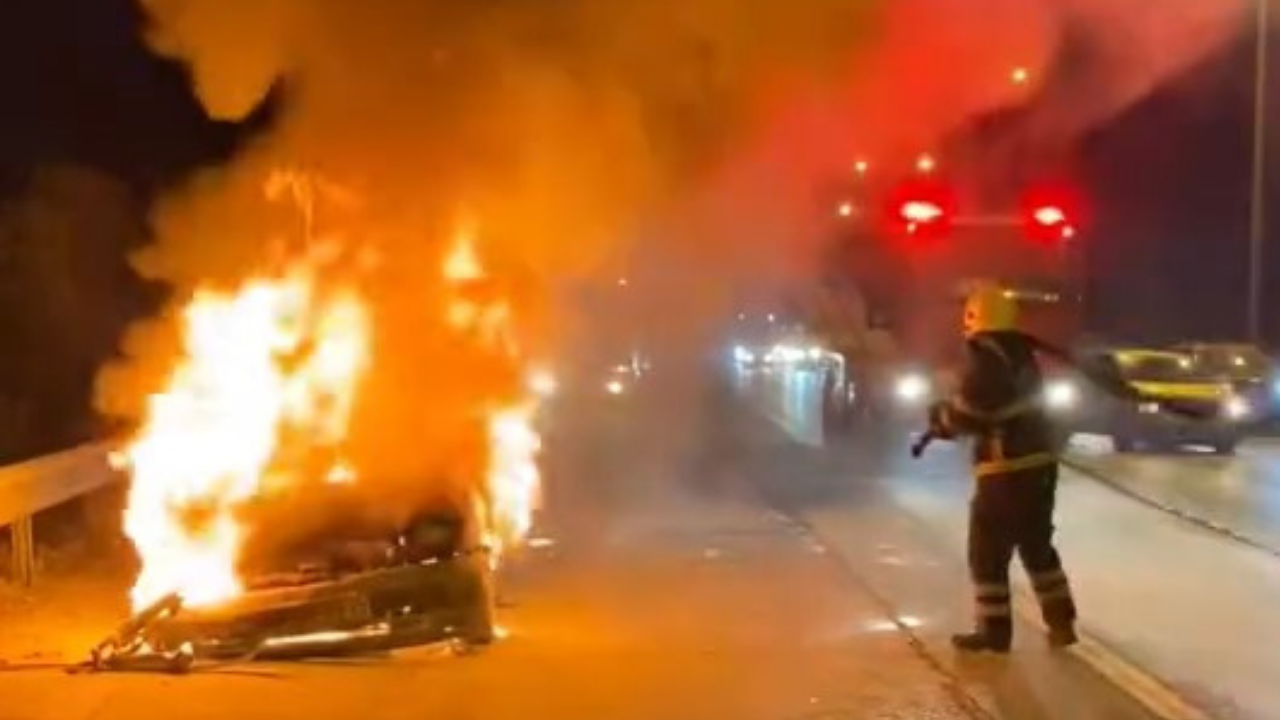 TEM Otoyolu'nda İstanbul istikameti Körfez geçişi Kirazlıyalı mevkiinde gece 01.00 sıralarında bayram tatilinden dönenleri taşıdığı öğrenilen otomobil bir anda alev aldı.