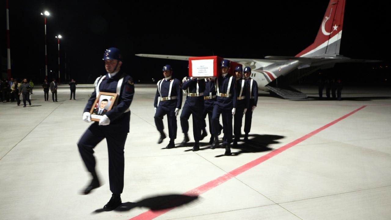 Şehidin cenazesinin uçaktan indirildiği sırada ailesi ve yakınları gözyaşlarına hakim olamadı.