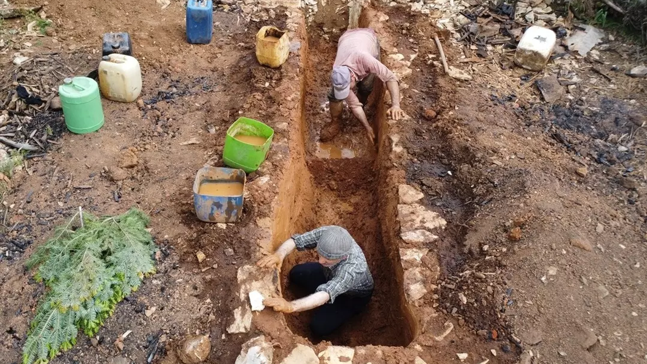 Kökler, sırtlarda ya da yük hayvanlarının yardımıyla köye taşındıktan sonra küçük çıralara ayrılıyor. Bu çıralar, toprakta özenle hazırlanmış kuyulara simetrik şekilde diziliyor. Üzeri ağaç dallarıyla kapatılan kuyu, çamurla tamamen hava almayacak biçimde örtülüyor.