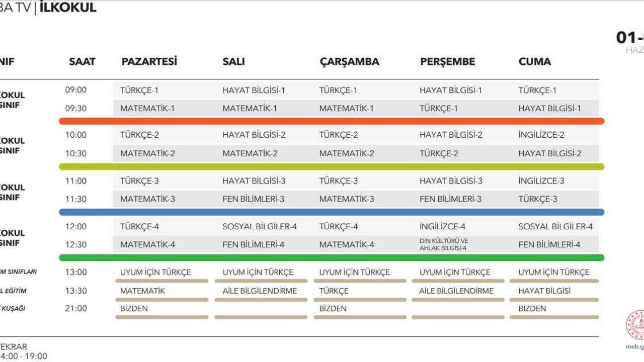 İlkokul 1.2.3.4. sınıf canlı ders programı ( 1 / 5 Haziran)