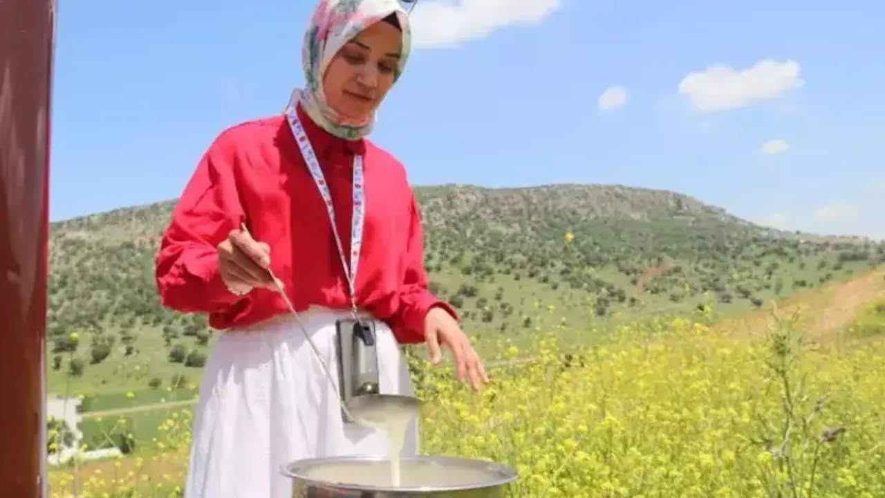 Çocukların ev yerine böyle açık alanlarda doğal ürünleri tüketmeyi daha çok sevdiğini anlatan Dündar, velilerin de katkısıyla onlardan süt temin edip, yoğurt hazırladığını, çocuklara ayran yapıp ikram ettiğini belirtti.