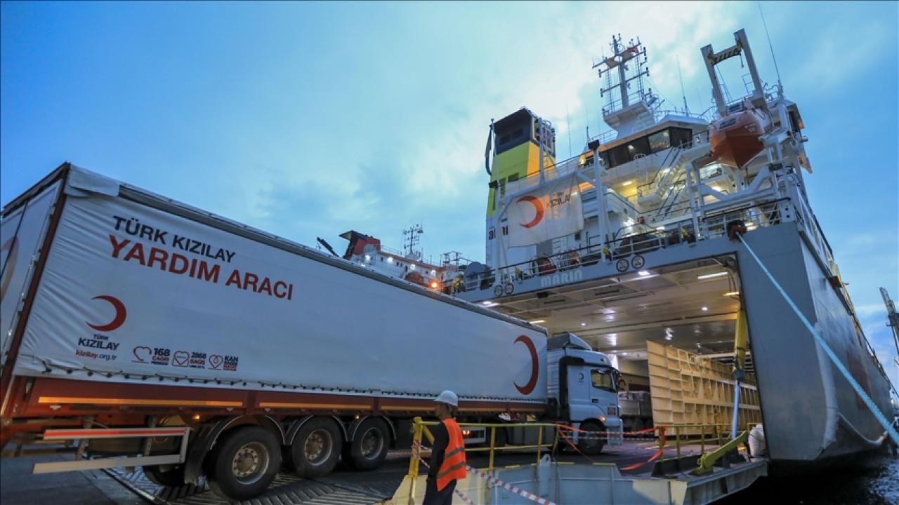 "İyilik Gemileri" adı verilen gemilerle Mersin Limanı'ndan Mısır'ın El-Ariş Limanı'na ulaştırılan gıda, su, hijyen, tıbbi ekipman ve barınma gereçleri gibi tonlarca malzeme, kara yoluyla Gazze'ye sevk ediliyor.