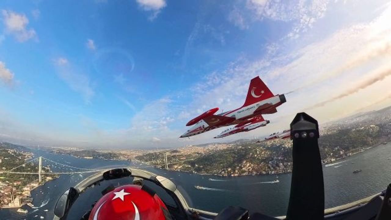 Milli Savunma Bakanlığı ( MSB), Cumhuriyet'in 100. doğum gününde İstanbul Boğazı semalarında inanılmaz bir gösteri gerçekleştirdi. Mili Savunma Bakanlığı SOLOTÜRK ve Türk Yıldızları'nın kokpit içi görüntülerini paylaşarak mükemmel gösteriye havadan da şahit olmamızı sağladı.